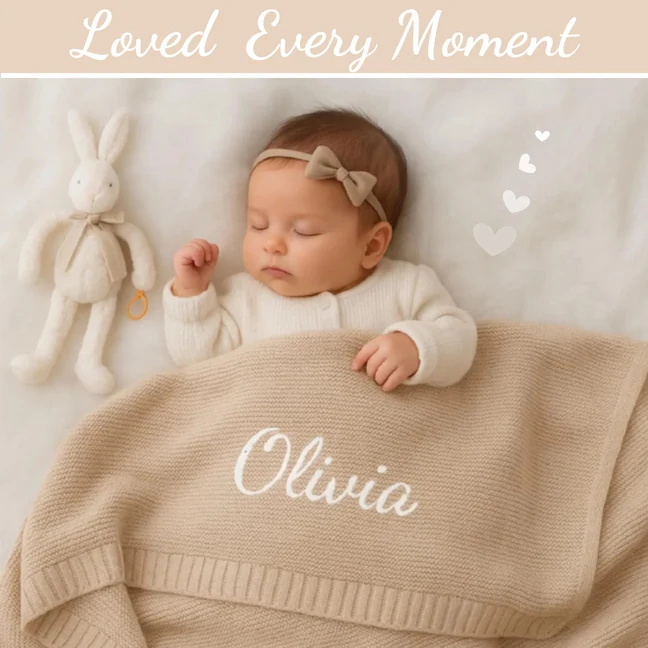 Embroidered Name Knit Baby Blanket, Custom Baby Name Blanket
